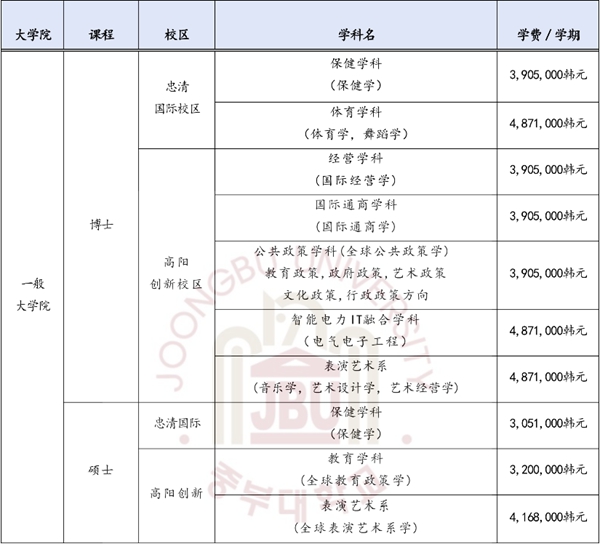 1、碩士:45萬韓幣(約合人民幣2227元)/學期