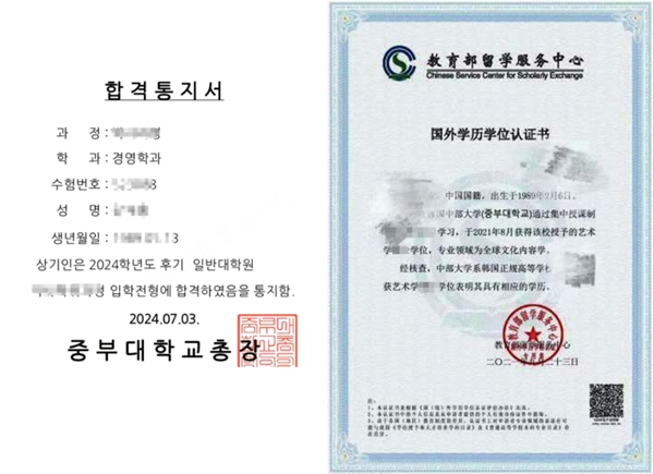中部大學錄取通知書及中留服國外學歷學位認證書樣本