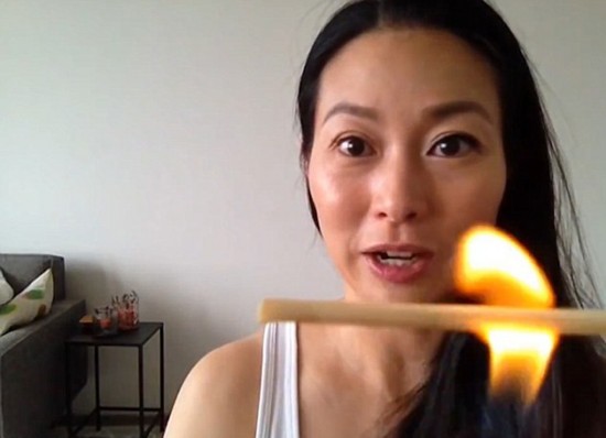 YouTube視頻網站的明星t0inky在時長8分多鐘的視頻中向網友展示了如何用火和一根木棒卷出美麗的睫毛。
