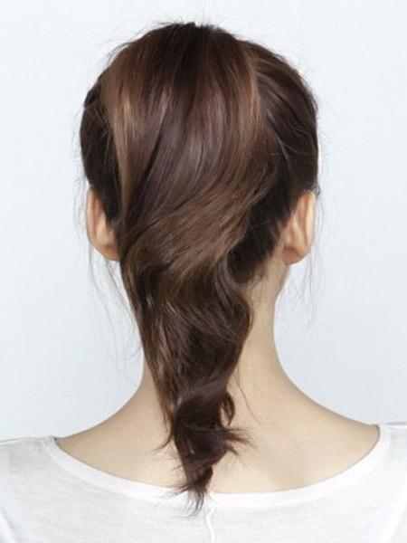 丸子頭扎法二:步驟一:先將頭發綁成高高的馬尾。
