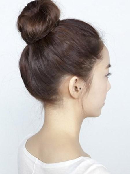 步驟三:最后用發夾將發尾固定,別進丸子頭中,這款丸子頭就搞定啦。
