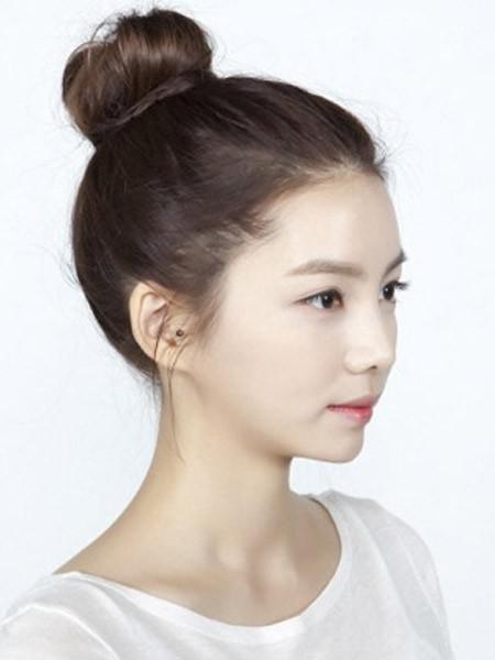 發絲雖緊致卻不失慵懶的隨意感,高聳的丸子頭減齡又顯甜美。