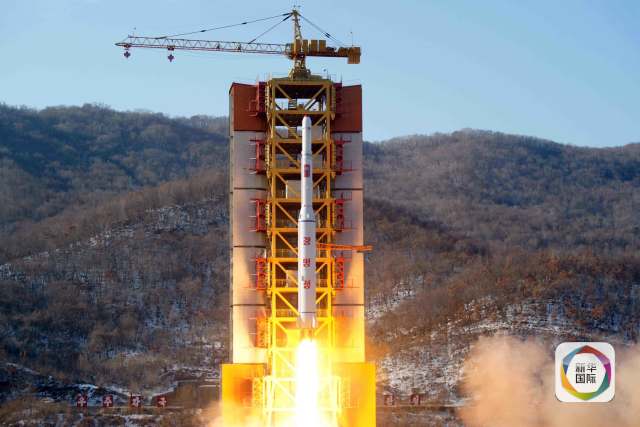 朝中社2月7日提供的照片顯示,朝鮮當天利用運載火箭成功發射“光明星4號”地球觀測衛星。(新華社/朝中社)