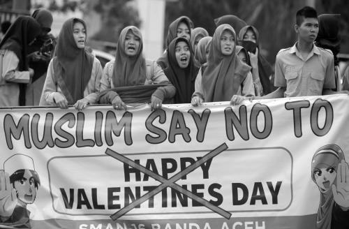 然而,在世界上一些觀念相對保守的國家或地區,情人節仍然受到不同程度的抵制。據英國《每日郵報》13日報道,在印尼亞齊省一些地區,慶祝情人節仍被視為“不法行為”,并被政府當局嚴令禁止。該省首府城市班達亞齊禁止市民互相贈送賀卡或巧克力。該市市長伊里查說:“我們的社區和穆斯林年輕人不應慶祝非伊斯蘭教的節日……政府當局有義務預防公眾和年輕一代人從事不法行為?!睋Q,當地執法人員將在情人節前后加緊巡邏,嚴查送花或贈送禮物等行為。