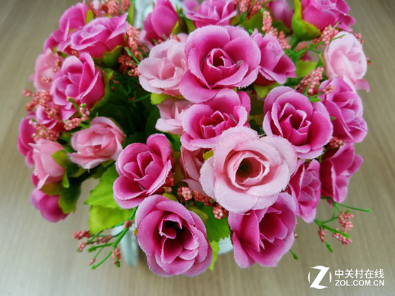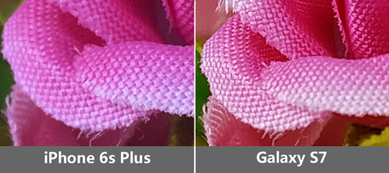 測試結果:在相同光線下兩款手機微距拍攝表現都很不錯,細節部分Galaxy S7拍攝的樣張銳度更高,假花的纖維清晰可見。iPhone 6s Plus則比較柔和,日常使用也沒問題。
