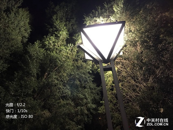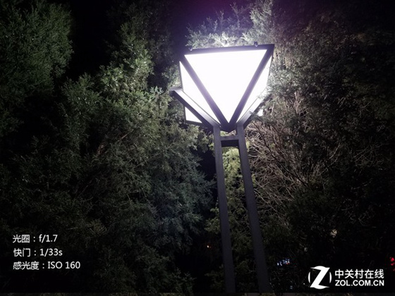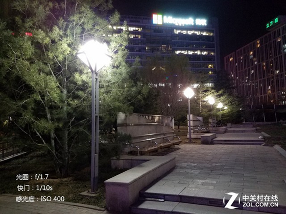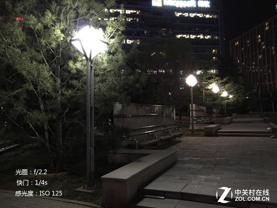 通過對比多組夜景樣張筆者發現,在相同場景下Galaxy S7拍攝的樣張使用的默認感光度往往都要高于iPhone 6s Plus。筆者選擇了兩組感光度數值相近的樣張來對比夜景分辨率和噪點表現。