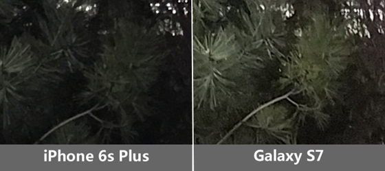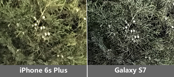 再來看下面一組樣張,同一場景下,Galaxy S7的樣張亮度更高,iPhone 6s Plus的樣張暗部細節損失不少。