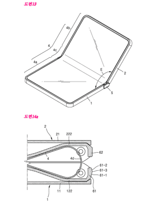 除了介紹機械合頁的細節之外,專利所展現的手機設計看上去相當完整,我們可以看到熟悉的電源鍵、音量鍵和攝像頭位置,但卻沒有Home鍵。手機上還有兩個磁力螺栓,用來在折疊狀態下固定手機。