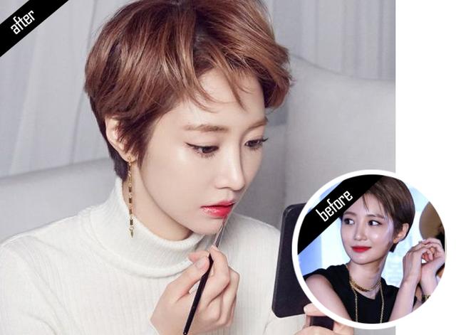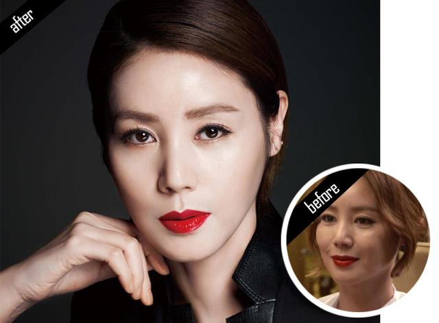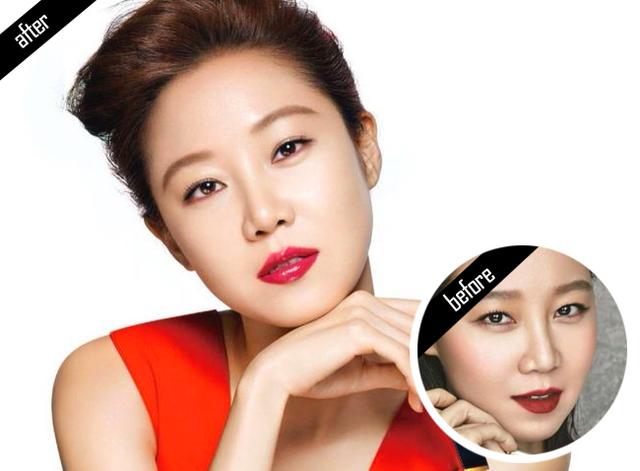 霧面磨砂唇膏暴露了金成玲真實的年齡,而唇部有光澤感以后整個臉頰都洋溢著年輕。