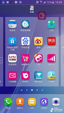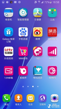 系統方面,三星Galaxy J7(2016)采用的是Android5.1.1+TouchWiz 2015的組合,界面風格和目前的三星旗艦一致,圖標為圓潤造型設計。由于筆者手中這款為移動定制版,所以可以看到其中內置了很多中國移動應用,不過不喜歡的用戶也不用過于擔憂,這些應用都可以在使用時自己刪除。