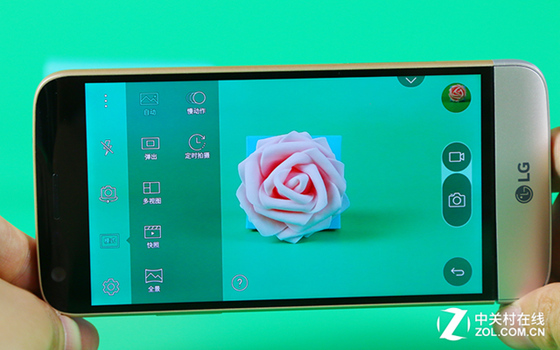 LG G5的相機功能設計非常不錯,在目前所有手機當中屬于最具可玩性和專業性隊列當中的前排位置,其中內置簡單模式、基本模式和手動模式,可以供不同級別的拍照用戶選擇使用。簡單模式畫面非常干凈,一觸即拍即可,不用其他操作,基本模式會有一些基本的功能設置,剛剛列舉的一些可玩性較高的模式均在這個模式當中,手動模式界面非常專業,支持2300—7500K非常明細的白平衡調節、最長支持30秒電子快門長曝光、感光度最低支持ISO50,并且支持自動曝光鎖定(AE-L模式),界面設計風格完全是將LG G5當做相機思路完成,頗顯專業(同時其也支持RAW格式拍照),對于比較專業的攝影玩家來說也有很大的發揮空間。