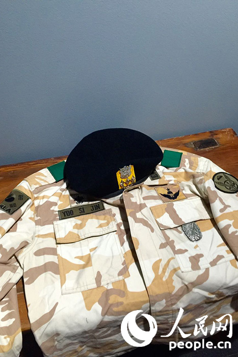 供游客拍照的軍裝,上面寫著柳時鎮的名字。 王昱祺 攝