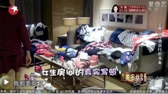 金晨是以【非典型處女座】的身份聞名于《花樣姐姐》劇組,一屋子的亂&永遠跟行李箱過不去。