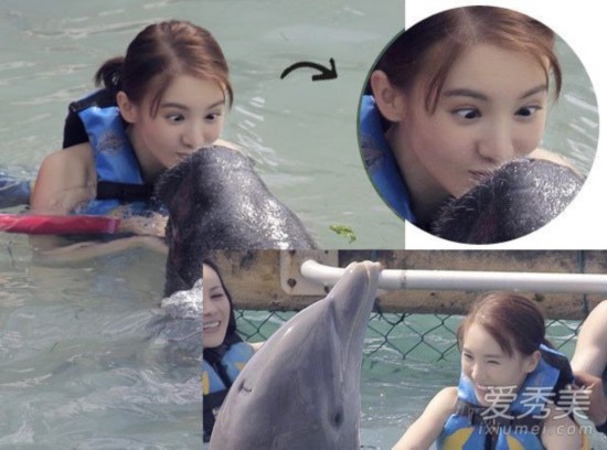 不過人家顏值還是在的。都說落水場景是顏值的試金石。金晨在水中與海獅海豚互動完全hold得住,哪怕在海水里嬉鬧了一天,也還是那么的鮮活水潤和充滿光采。