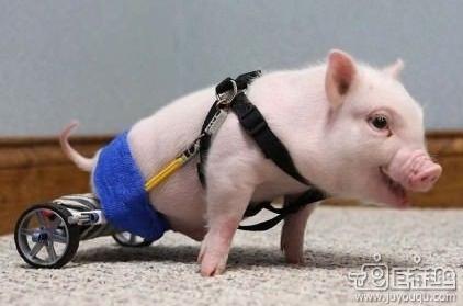 一只名叫Chris P. Bacon的小豬天生沒有后腿,好心的獸醫盧塞羅用兒童玩具配件組裝了一個小輪椅,做成可以移動的小豬后腿。