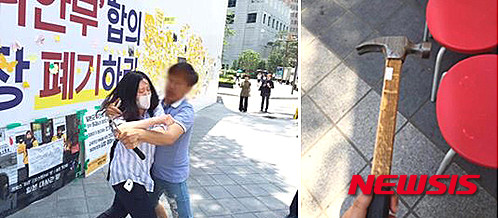 事件發生于3日中午12時30分,嫌疑人持一把長約49厘米的鐵錘連續擊打日本駐韓國大使館門前的慰安婦少女銅像。