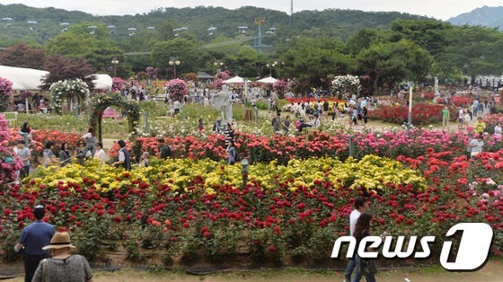 人民網6月7日訊 首爾大公園自5月27日起舉辦玫瑰節慶典,170多種上萬朵各色玫瑰花競相開放,吸引大批民眾前來拍照。