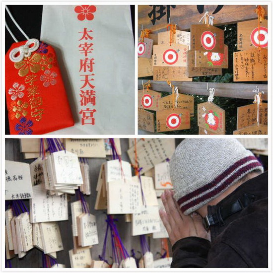 在日本,菅原道真被稱為“學問之神”,以保佑學業而聞名。日本家長在高考之前會到神社祭拜“學問之神”,求一些“御守(護身符)”、掛一塊“繪馬(許愿牌)”,以求孩子考試順利、學業順暢。在眾多的“御守”中,太宰府天滿宮的“合格御守(合格符)”人氣最高,最受家長歡迎。