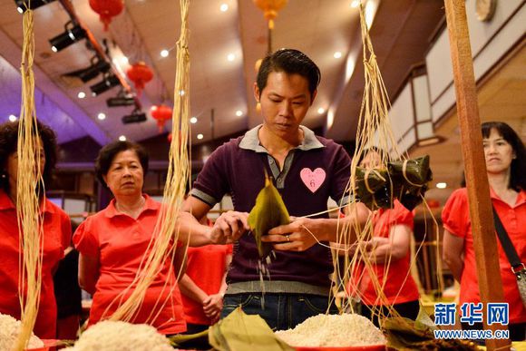 資料圖:在馬來西亞首都吉隆坡,市民正在參加裹粽比賽。