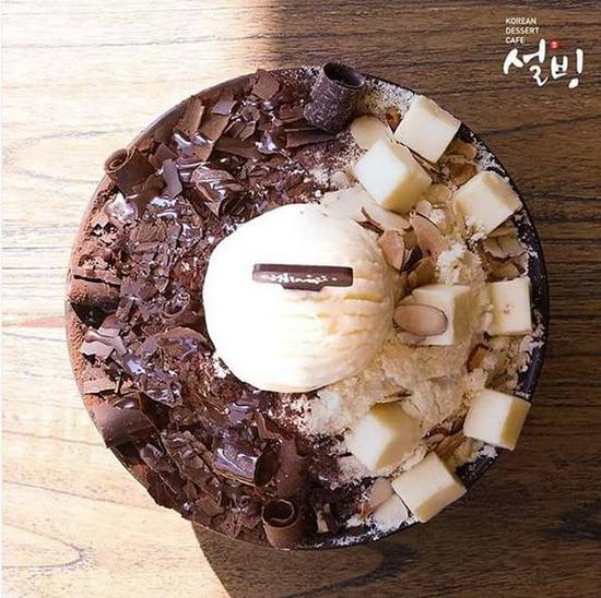 雪冰是韓國甜品店Sulbing的招牌,雪冰元素創始人在日本進修時發現日本傳統甜點在當地屬于高檔食物,因此產生了將本國傳統食物與甜品相結合的想法,由此創造出了年糕雪冰,并一炮而紅。2014年的大熱韓劇《匹諾曹》也曾在店里取景。