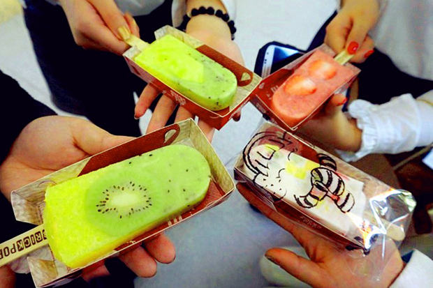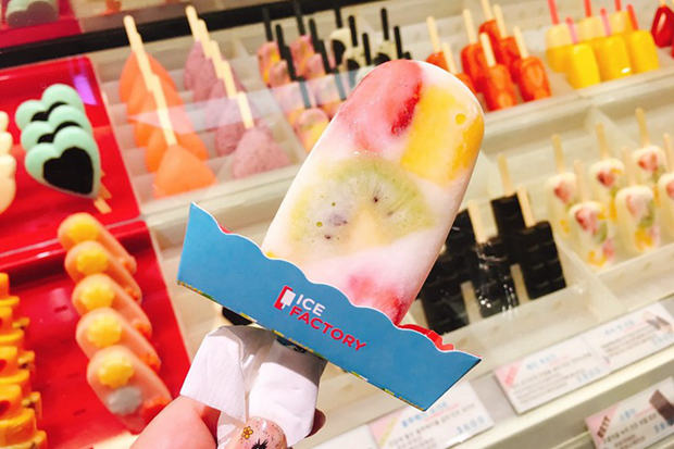 相信大家在小時候都有過把水果放進冰箱里冷凍以后再拿出吃的經歷。韓國當下流行的純手工水果冰淇淋正是用新鮮水果、酸奶等材料制作而成,充滿了童年的味道。水果冰淇淋的品種也十分豐富,草莓、西瓜、火龍果、西柚、獼猴桃等口味應有盡有,滿足吃貨的一切需求。散發著濃郁果香的水果冰淇淋,就連平時不喜歡吃冰淇淋的人也會忍不住想來一根。