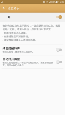 首先當然是紅包助手,微信搶紅包實在太火了,手動去搶基本上是“次次錯過幾百萬”,借助于紅包助手則可以快速的自動打開到收到紅包的頁面,簡化了搶紅包的操作步驟,效率自然也提升了;單手模式比較適合擠地鐵時使用,讓單手操作變得更輕松。