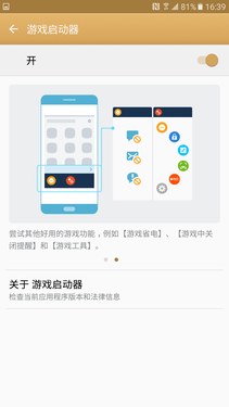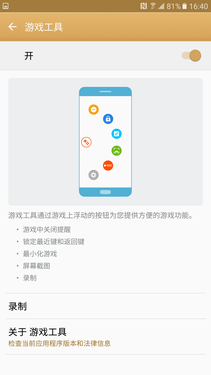 “游戲啟動器”可以幫助用戶把安裝的游戲集中到一處進行管理,并可以通過統一調節幀率來實現省電的目的;“游戲工具”提供關閉提醒、鎖定按鍵防誤觸、最小化游戲、游戲截圖、游戲視頻錄制等功能。