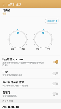 對于愛聽歌的用戶,三星Galaxy C5雖然沒有采用專業HiFi芯片,但是加入了U品原聲音效,開啟后可以感覺到歌者就在耳邊聆唱,現場感十足,而且U品原聲不僅支持自帶的音樂播放器,也可以兼容網易云音樂這些第三方播放器,這點還是很不錯的。