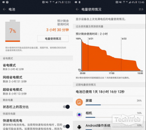 續航表現,三星Galaxy C5配備2600mAh電池容量,對于這款輕薄機型續航表現也還不錯,標配9V/1.67A的快充頭,支持快速充電。實測充電速度,從剩余4%電量開始充到100%電量,只需要1小時左右即可充滿,充電速度非???,確實省事。在日常狀態下續航可以達到1天18小時,主要平常接打電話,收發郵件社交,拍照等,綜合表現很可觀,不像其他手機那樣耗電太厲害。