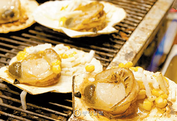 在扇貝上放上滿滿的玉米和芝士進行烘烤后,涂上番茄醬即可。就街邊飲食來講,雖然費時價高,但排隊等候的顧客絡繹不絕,足見其美味。價格:8000韓元(約合人民幣45.5元)