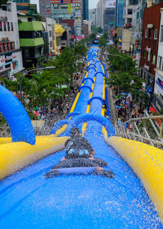 水槍節上的巨型滑水道