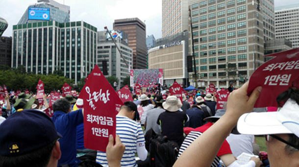 韓國勞方希望政府將最低時薪定為1萬韓元。