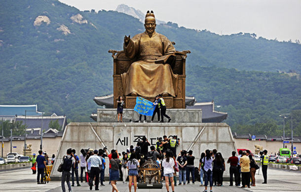 因此近日有韓國民眾走上街頭示威,希望政府能提高明年最低時薪的漲幅。上周,一些韓國年輕人在首爾光化門廣場舉行了示威,要求政府將最低時薪標準上調至1萬韓元(約合人民幣60元),甚至有示威者爬上了世宗大王銅像,以示抗議。韓國網友也紛紛留言表達不滿,“物價上漲這么快,工資卻這么少,現實太殘酷了!”“135萬韓幣連我自己都養不起,還怎么養孩子?”