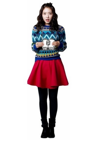 在《鄰家花美男》海報的拍攝中,樸信惠一身撞色小套裙的搭配,活潑可愛。