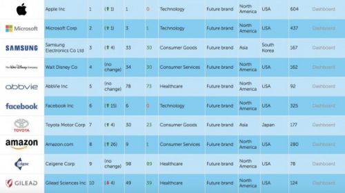 而曾在去年拔得頭籌的谷歌因為公司重組以全新的Alphabet排在第21的位置,這個名字對很多人來說熟悉度并不高。