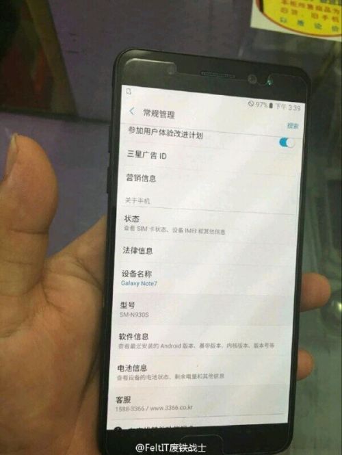 但最新的消息表明,三星似乎依然選擇雙屏幕設計,有曲面屏幕的Edge版本和平面屏幕兩種。網絡上首次出現平面屏幕的Note 7。