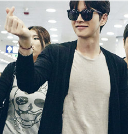現在流行的是大拇指和食指交叉捏在一起的心形手勢,正如下圖韓國樸海鎮所示。