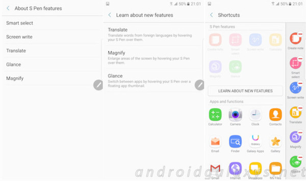 8月1日消息,手寫筆S Pen算得上是三星Note系列產品的核心亮點了,即將到來的三星Note 7也在S Pen上玩出了新花樣。據外媒報道,三星Note 7 S Pen將帶來三個新特性,分別是翻譯(Translate)、放大(Magnify)和瀏覽(Glance)。