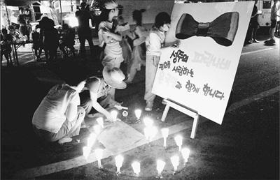 韓國星州郡民眾舉行燭光集會,抗議部署“薩德”反導系統,要求韓國政府撤回有關決定。右邊標語為“星州的藍色蝴蝶與所有熱愛和平的國民同在”。