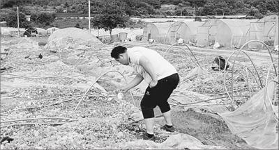 星州郡瓜農申某在整理因抗議部署“薩德”而遭自己毀壞的瓜田。本報記者 陳尚文攝