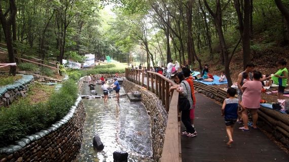 位于仁川蝴蝶公園旁的張水山溪谷水上樂園是個親近大自然的好去處。雖然水上樂園內沒有特別的游樂設施,但水上樂園被建成樹林里溪谷的形態,因此很適合在親近大自然的同時愉快地游玩。由彎彎曲曲的溪谷連接起來的水上樂園上鋪滿了木板,非常適合散步。在木板路后面的樹林中可以鋪開涼席稍作休息。由于蝴蝶公園也在附近,因此游覽水上樂園之后可以帶孩子去參觀和體驗。