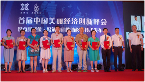 在這次美創會上,馮斌點脂成金項目成為峰會最大亮點。中國自體脂肪移植技術領軍人物馮斌在峰會上分享了點脂成金的項目故事。馮斌說,“再好的奶粉,也不如自己的母乳,再好的填充物,都不如自己的脂肪,我們的自體脂肪移植技術能夠在一小時內完成,脂肪成活率高,可為求美者提供安全、健康的脂肪移植先進技術?!睋私?,馮斌的高清晰逐步掃描吸脂用平層吸脂針、一種多點多層次立體式注射豐胸術使用的脂肪恒溫機、脂肪面膜的填充術用注射裝置分別獲得了國家實用新型專利。馮斌表示,希望將這項專利技術推廣到日本、韓國,乃至全世界。