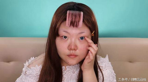 沒有對自己做太多的介紹就直接開始了。妹子這次嘗試只化半張臉的妝,方便對比效果。 首先是眼睛,眼睛小的話雙眼皮貼是一定要的。