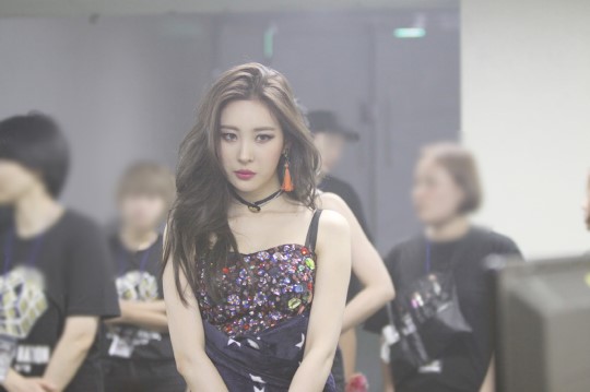 認真看后輩表演的宣美,散發“前輩”魅力。
