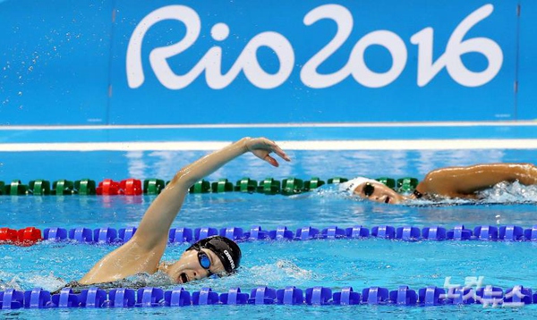 7月31日,韓國游泳代表隊在巴西里約熱內盧奧林匹克游泳館備戰奧運。