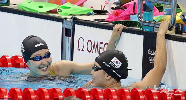7月31日,韓國游泳代表隊在巴西里約熱內盧奧林匹克游泳館備戰奧運。