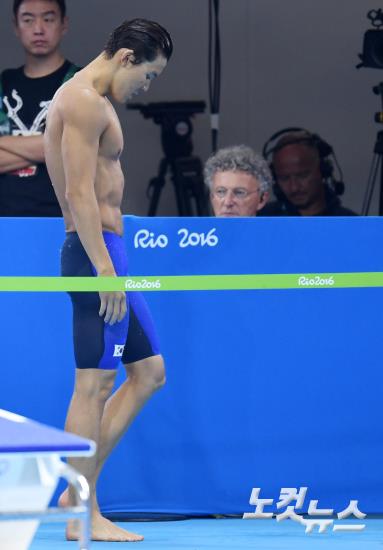 9日下午,在里約奧運會男子100米自由泳預賽中,韓國游泳名將樸泰桓以49秒24的成績排名第32位遭到淘汰,未能晉級半決賽。賽后樸泰桓露出失望表情。