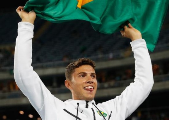 8月15日,達席爾瓦慶祝奪冠。當日,在2016年里約奧運會男子撐桿跳高決賽中,巴西選手達席爾瓦以6米03的成績奪得冠軍。
