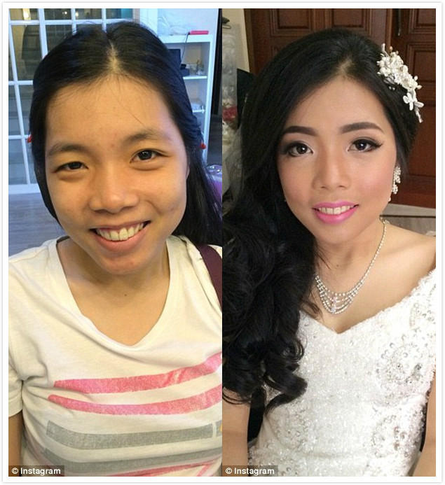 視頻火遍社交網絡之后,韓國的姑娘們紛紛效仿,發布了自己的化妝前后對比照,不少姑娘并沒有選擇高難度的“半面妝”。