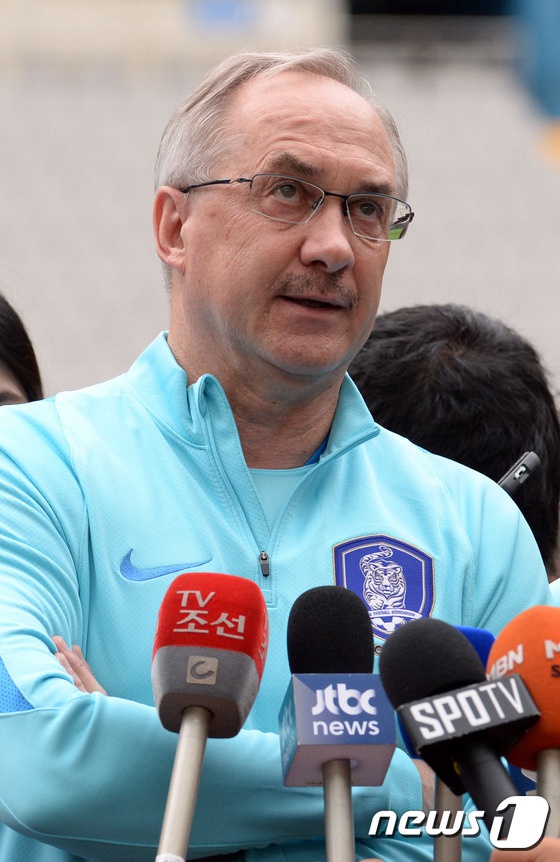 韓國隊主教練施蒂利克接受記者采訪(圖片來源:news1)
